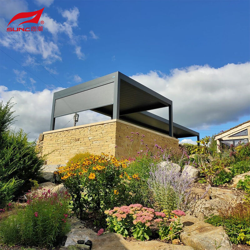 Motorized Waterproof Bioclimatic Pergola with 6063-T5 Aluminum Alloy Louvered Roof