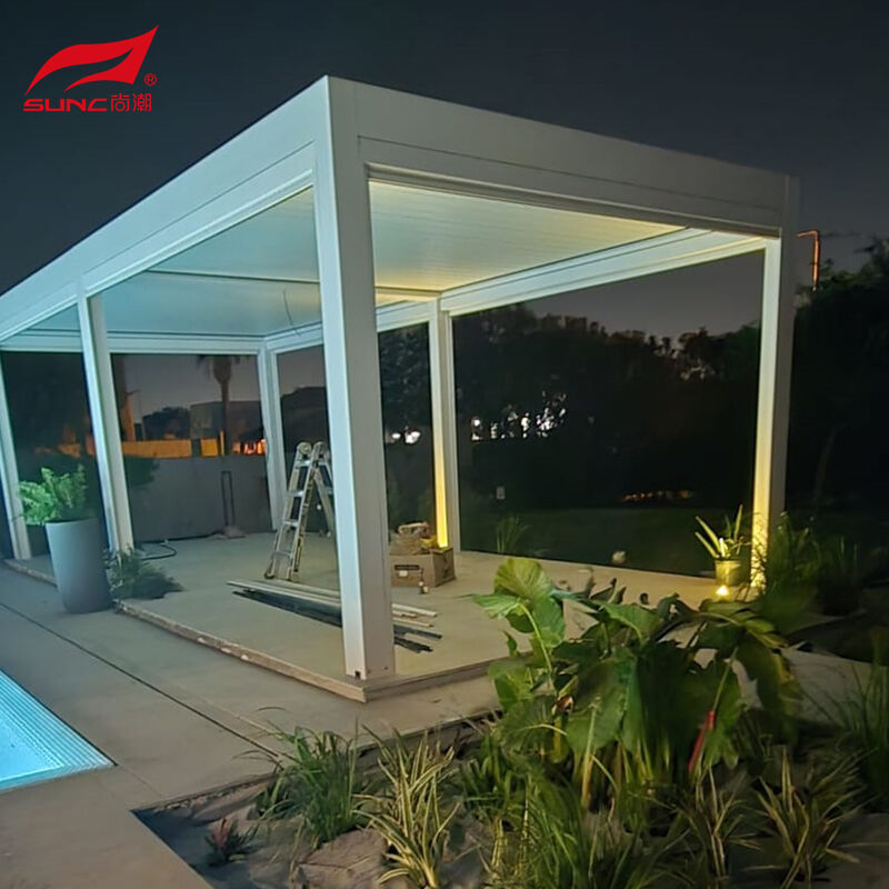 Waterproof Motorized Aluminum Retractable Pergola with 6063-T5 Aluminum Alloy Louvered Roof 38